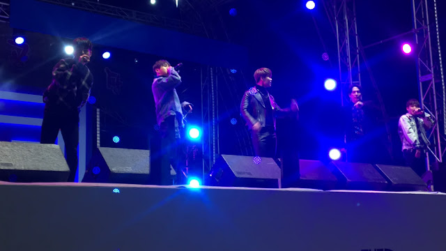 The highlight of my night though was Daehyun. He is my bias, and forever my top favorite singer. During their final song, my friend and I saw him wave to a member of the crowd, and so naturally we started waving at him too, hoping to get his attention. Being in the front row benefited us greatly, as he not only saw us both waving at him, but HE WAVED BACK. He waved at me and I nearly died right there I was so excited. After the show we tried to stick around and see if they would greet fans, but they didn't. Probably ran off somewhere to get warm, which I wouldn't blame them for doing.
